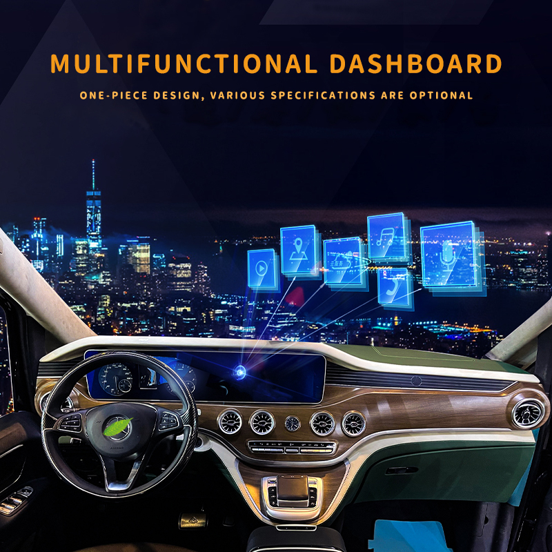 The instrument panel is replaced with a high-end version of V260. The instrument panel is wrapped in high-end nappa leather, and the imperial blue with orange-red bone edge stitching is advanced and stylish. Design swirl air outlet, touch screen control, one-piece luxury mahogany inlaid decoration, smooth touch, showing high-end luxury. The multifunctional steering wheel wrapped in half leather and half mahogany is comfortable to hold and easy to control. The armrest of the saddle is upgraded and equipped with a central storage bag. The surface of the armrest box is made of nappa leather, which is soft in texture and does not feel hard plastic when touched. texture. The main and auxiliary seats are equipped with an intelligent electric system, with ventilation, heating, and other functions, all of which can be controlled with one button, which is convenient and simple.